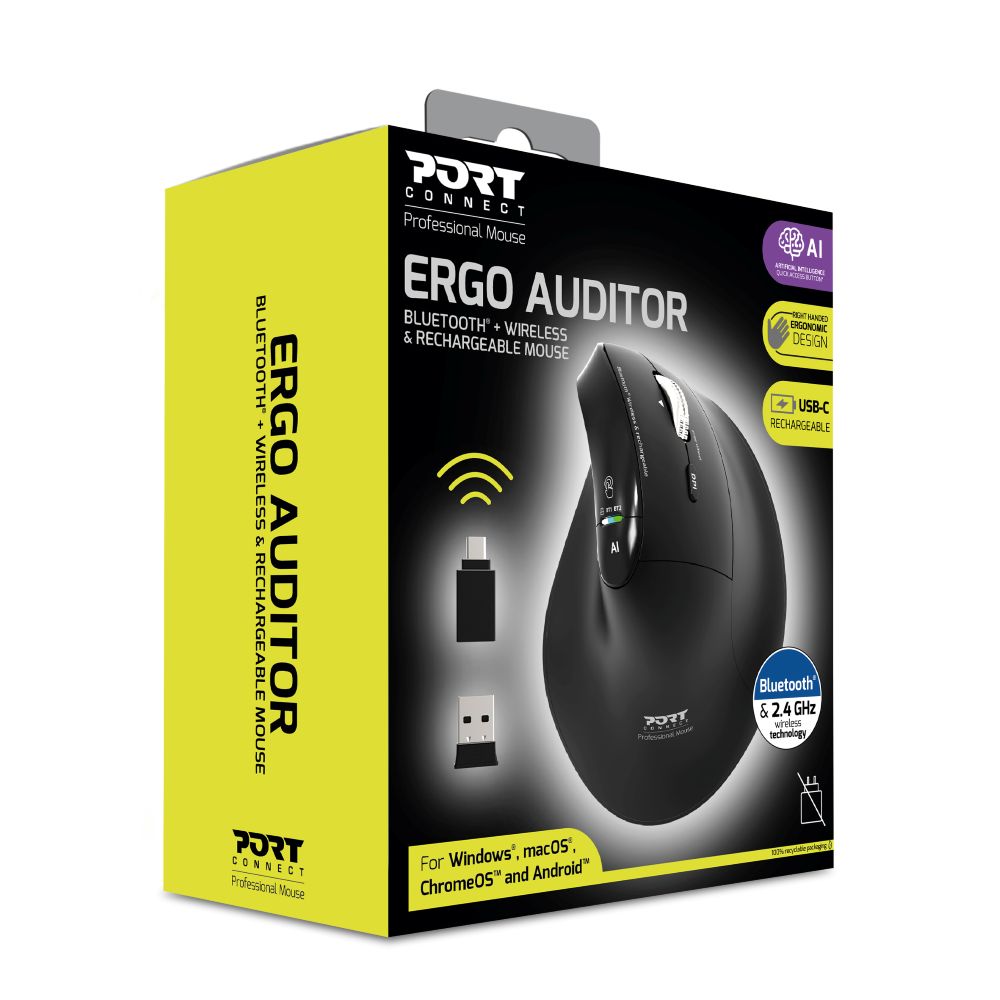Port Mouse Ergonomic Rechargeable Bluetooth Ergo Auditor